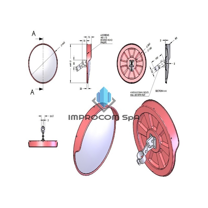 Espejo Convexo 45 cmEC45-EXUso ExteriorPara Instalar en Poste CilíndricoPeso 2.2 Kg.Incluye en su Base Accesorios Metálicos para FijaciónOpcionalAdaptador para Muros