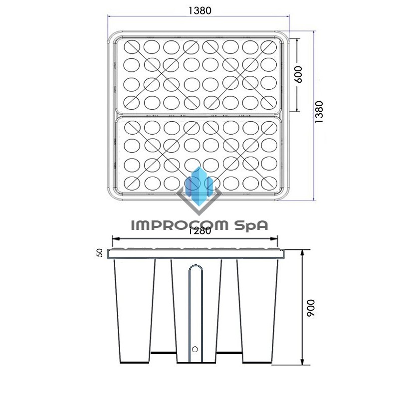 Pallet Antiderrame IBC 1100 LitrosPAD-1100CNPallet ApilableMedidas ExterioresLargo x Ancho x Alto1380 x 1380 x 900 mmCapacidad 1 Estante IBC de 1000 Litros2 Bandejas PerforadasCapacidad de Retención 1300 LitrosPeso con Bandejas 71 Kilos
